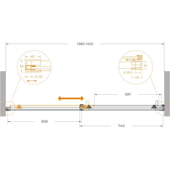 Душевая дверь Cezares Plane PLANE-BF-1-140-C-BORO 140 см, профиль золотой матовый, стекло прозрачное