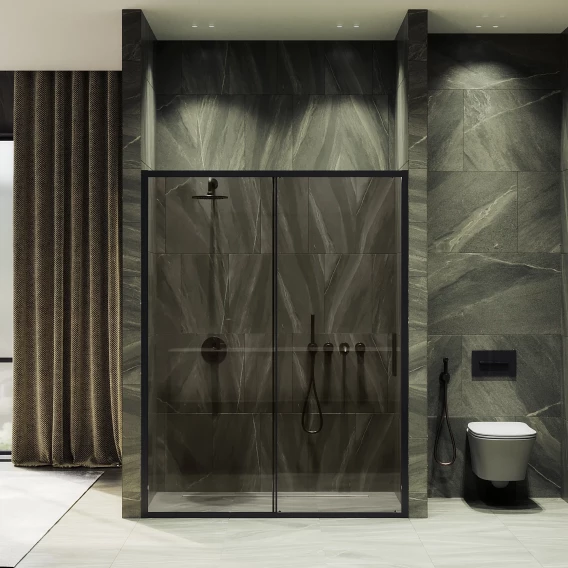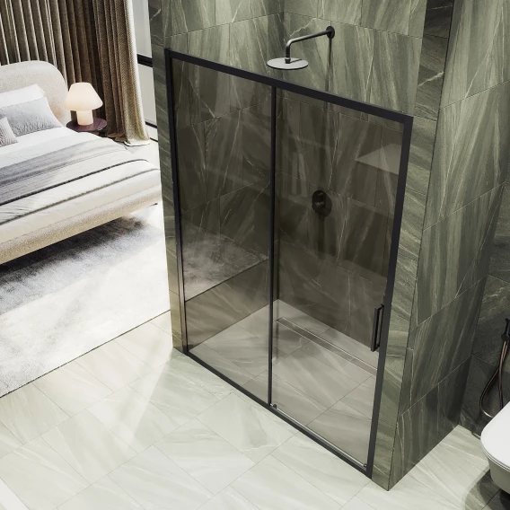 Душевая дверь MaybahGlass MGD-1541-6 120 см, профиль черный матовый, стекло бронза