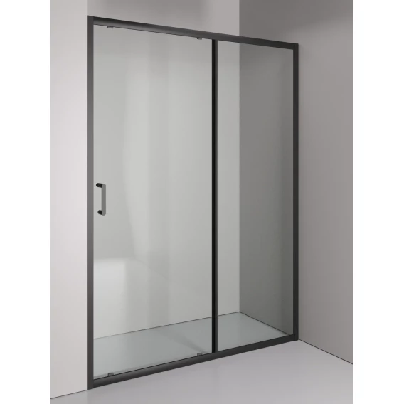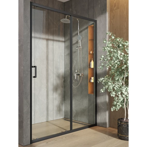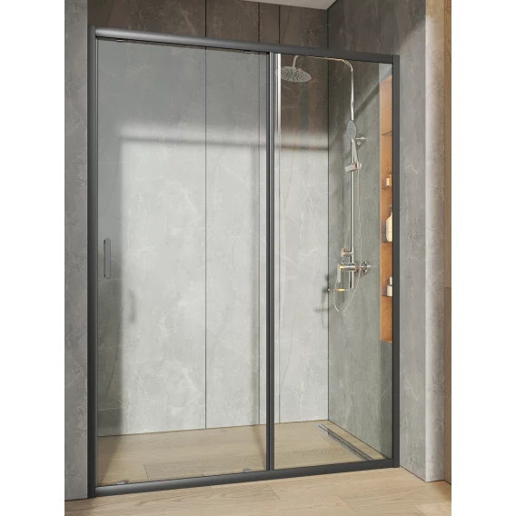 Душевая дверь Orange E02-140TB 140 см, профиль черный матовый, стекло прозрачное