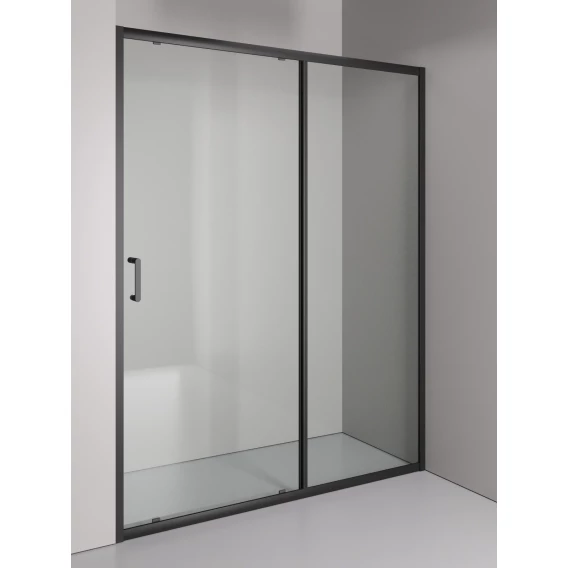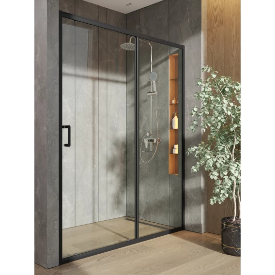 Душевая дверь Orange E02-150TB 150 см, профиль черный матовый, стекло прозрачное