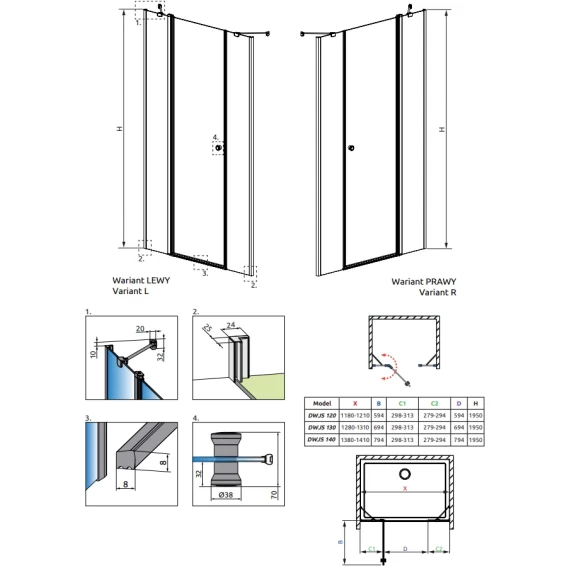 Душевая дверь Radaway EOS DWJS 120 Left 13799454-01L прозрачное