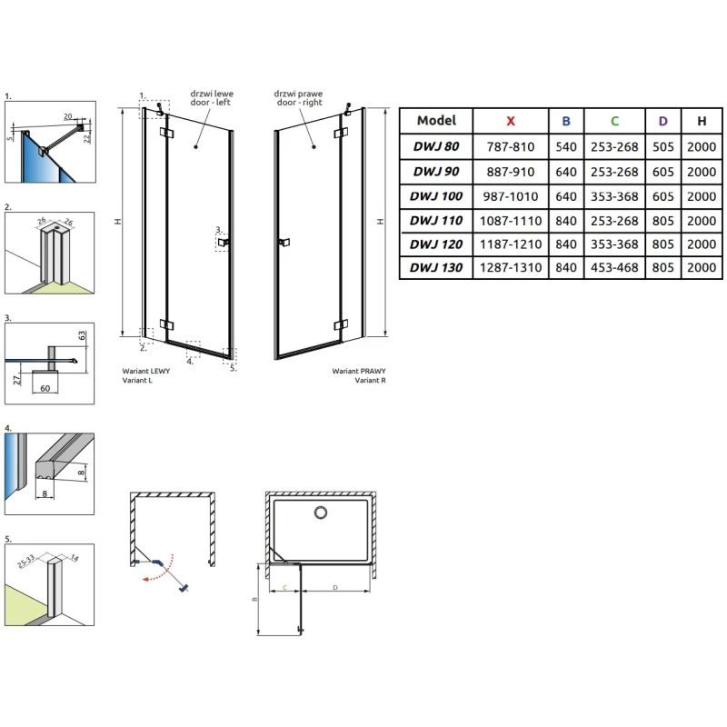 Душевой уголок без поддона 90x70x170 см River DON 90/70/26 МТ L/R