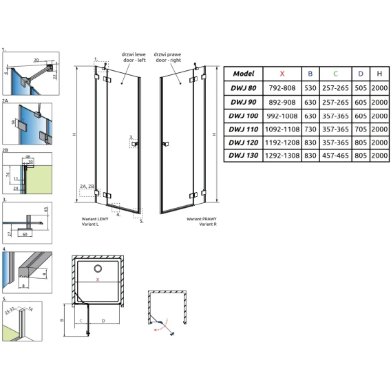 Душевая дверь Radaway Essenza Pro Gold DWJ 130 Left 10099130-09-01L прозрачное