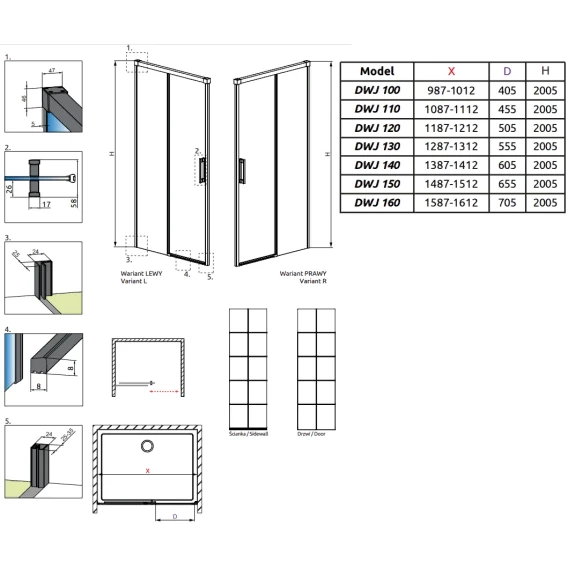 Душевая дверь Radaway Idea Black DWJ 160 Left Factory 387020-54-55L прозрачное