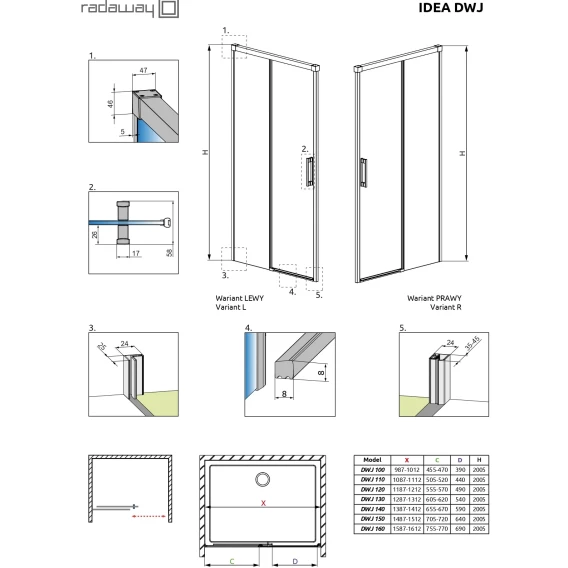 Душевая дверь Radaway Idea Brushed Copper DWJ 150 Right 387019-93-01R 150 см R, профиль медь матовая, стекло прозрачное