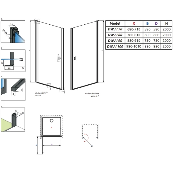 Душевая дверь Radaway Nes Black DWJ I Frame 80 Left 10026080-54-56L прозрачное