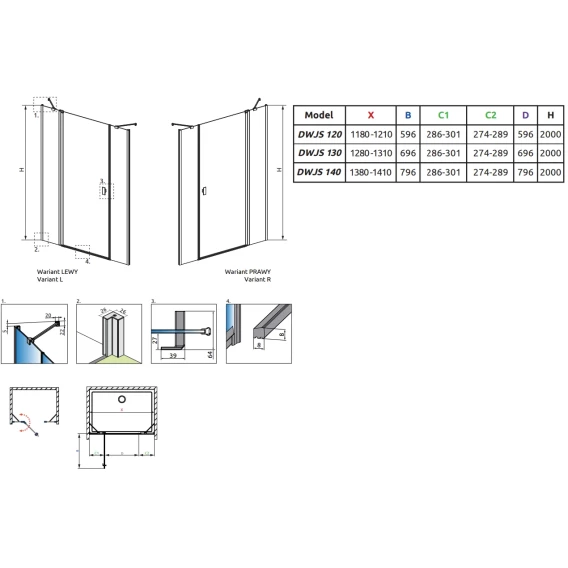 Душевая дверь Radaway Nes Black DWJ II 120 Left 10036120-54-01L прозрачное