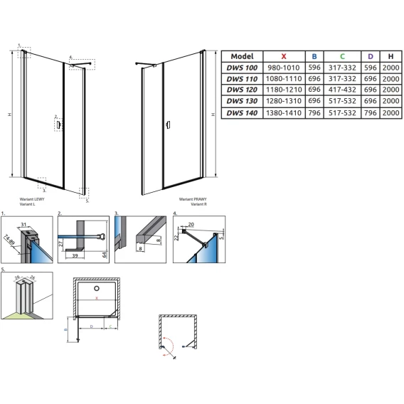 Душевая дверь Radaway Nes Black DWS 130 Right 10028130-54-01R прозрачное