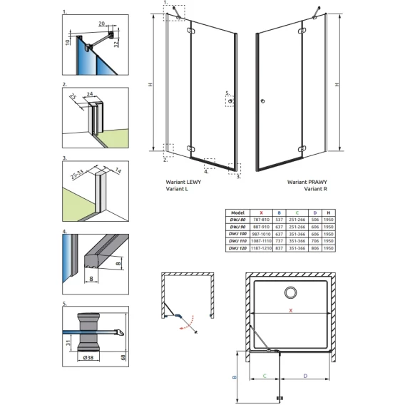 Душевая дверь Vegas Glass EP NOVO h2000 95 01 10 95 см, профиль белый, стекло сатин