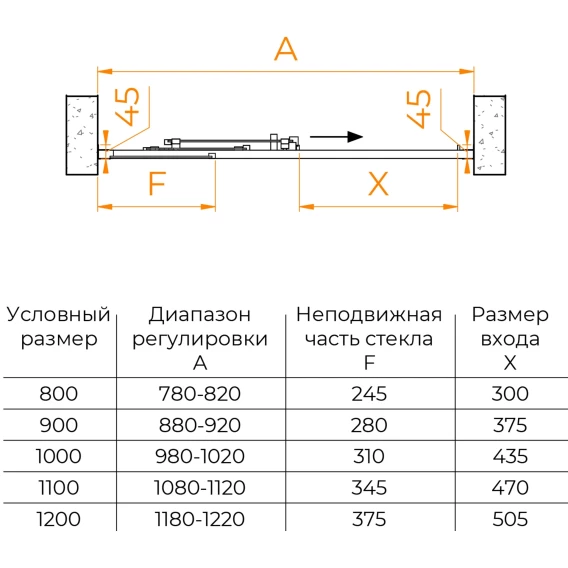 Ширина входа 43.5 см
