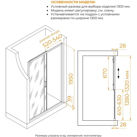 Ширина входа 54 см