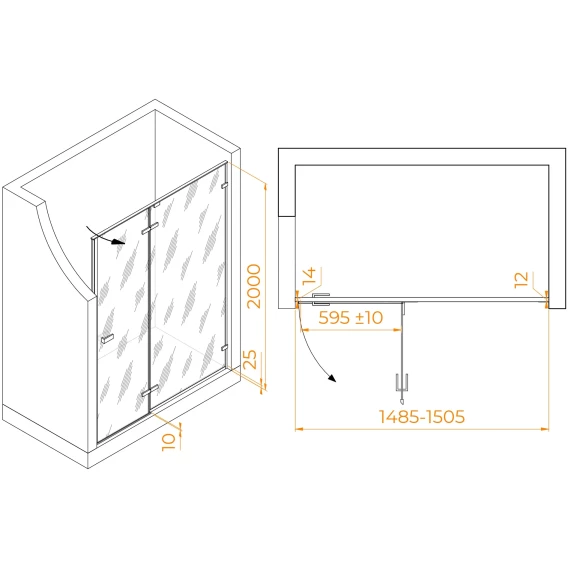 Душевой уголок 150x80 см Veconi Rovigo RV065-15080PR-01-19C3 прозрачное