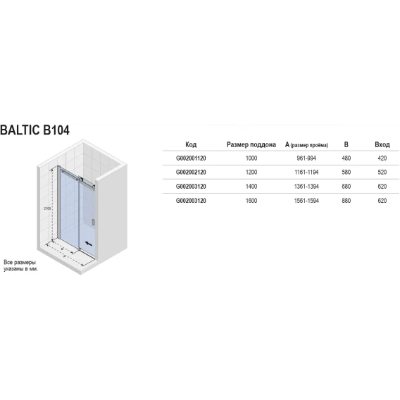 Душевая дверь Riho Baltic B104 G002002120 119,4 см, профиль хром, стекло прозрачное