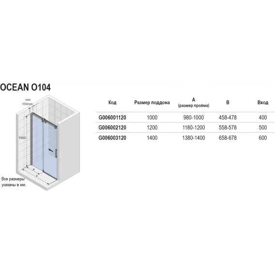 Душевая дверь Riho Ocean O104 G006002120 120 см, профиль хром, стекло прозрачное