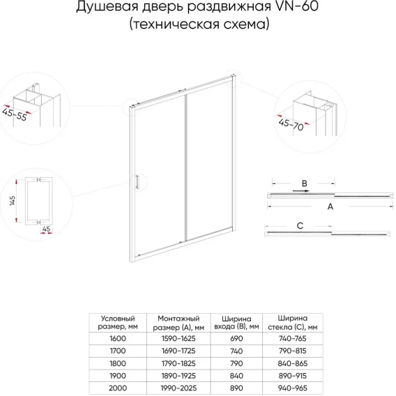 Душевая дверь Veconi Vianno VN60-160-01-C5 160 см, профиль хром, стекло прозрачное