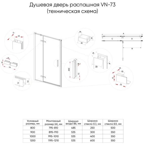 Душевая дверь Veconi Vianno VN70CH-160-01-C4 160 см, профиль хром, стекло прозрачное