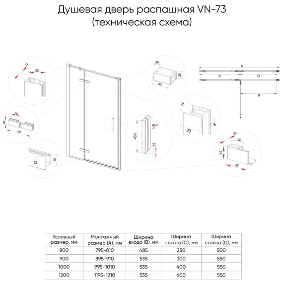 Душевая дверь Veconi Vianno VN55-120-02-C8 120 см, профиль хром, стекло pear