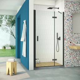 Душевая дверь Vegas Glass EP NOVO h2000 85 02M 01 85 см, профиль черный матовый, стекло прозрачное