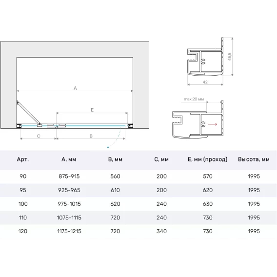 Душевая дверь Vegas Glass AFP Retta 90 01 02 R 90 см R, профиль белый, стекло шиншилла