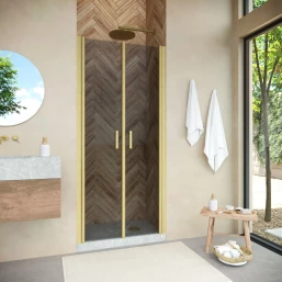 Душевая дверь Vegas Glass E2P NOVO 75 03 07 75 см, профиль золотой матовый, стекло графитовое