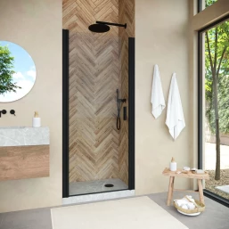 Душевая дверь Vegas Glass EP NOVO 85 02М crystalvision 85 см, профиль черный матовый, стекло прозрачное