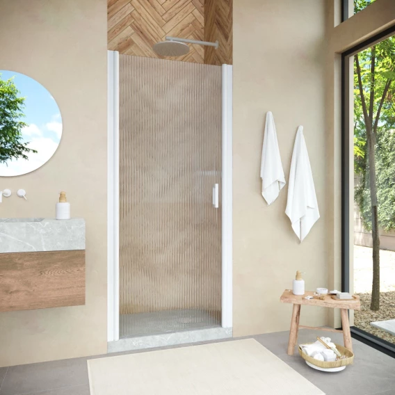 Душевая дверь Vegas Glass EP NOVO h2000 60 01 Moru 60 см, профиль белый, стекло рифленое