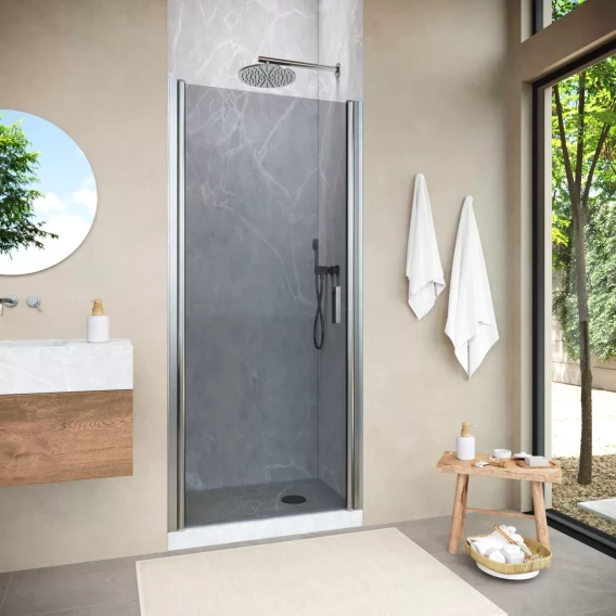 Душевая дверь Vegas Glass EP NOVO h2000 85 04 02 85 см, профиль никель матовый, стекло шиншилла