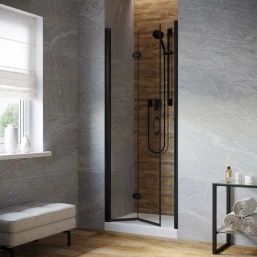 Душевая дверь Vegas Glass EP LUX 90 02M Moru L 90 см L, профиль черный матовый, стекло рифленое