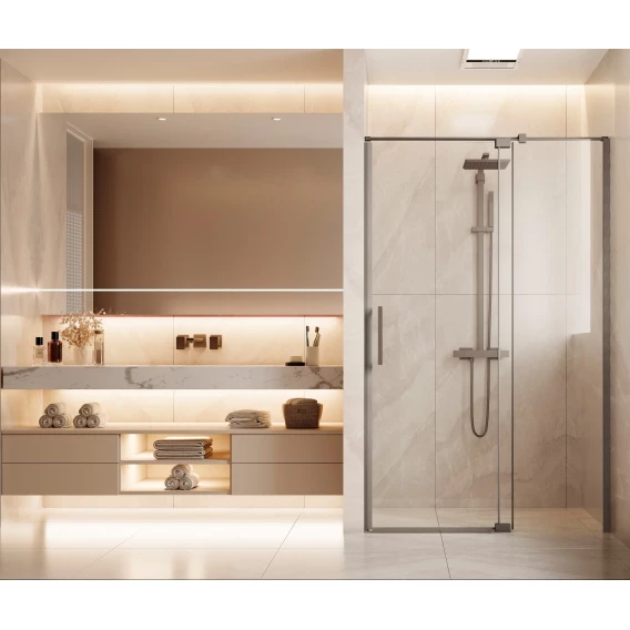 Душевая дверь Vincea Extenza VDP-4EX1112CLGM 109-122 см, профиль вороненая сталь, стекло прозрачное