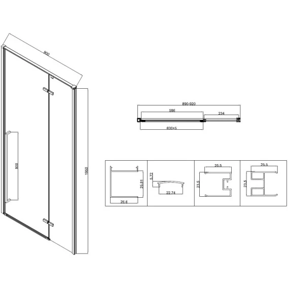 Душевой уголок 130x80 см Abber Schwarzer Diamant AG30130B-S80B-S80B прозрачное