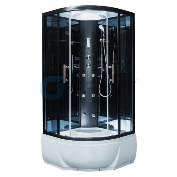 Душевой шланг, Душевая лейка, Держатель для душевой лейки, Полочка, Ручки, Подсветка, Верхний душ, Поддон, Сиденье, Радио, Смеситель, Сифон, Штанга душевая, Зеркало