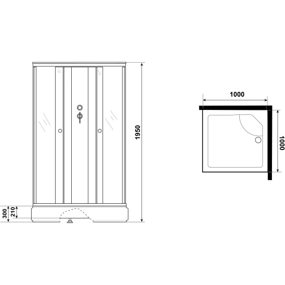 Душевая кабина 100x100x195 см Niagara P90/26Q/MT/BK матовое