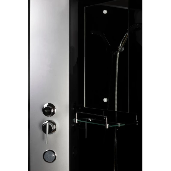 Душевой шланг, Душевая лейка, Держатель для душевой лейки, Подключение для душевого шланга, Полочка, Верхний душ, Поддон, Сиденье, Смеситель, Сифон, Ножки, Зеркало