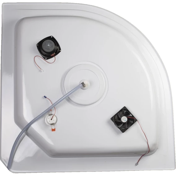 Душевой шланг, Душевая лейка, Держатель для душевой лейки, Подключение для душевого шланга, Полочка, Верхний душ, Динамик, Поддон, Сиденье, Радио, Смеситель, Сифон, Ножки, Зеркало