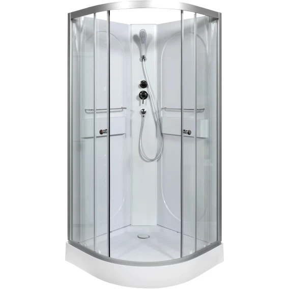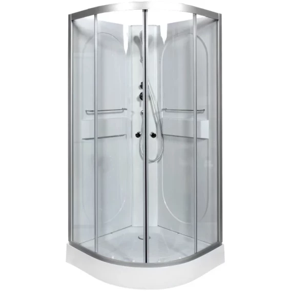 Душевой шланг, Душевая лейка, Держатель для душевой лейки, Подключение для душевого шланга, Ручки, Металлический каркас, Поддон, Смеситель, Сифон, Ножки