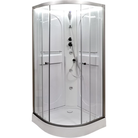 Душевой шланг, Душевая лейка, Держатель для душевой лейки, Подключение для душевого шланга, Ручки, LED подсветка, Металлический каркас, Поддон, Смеситель, Сифон, Ножки