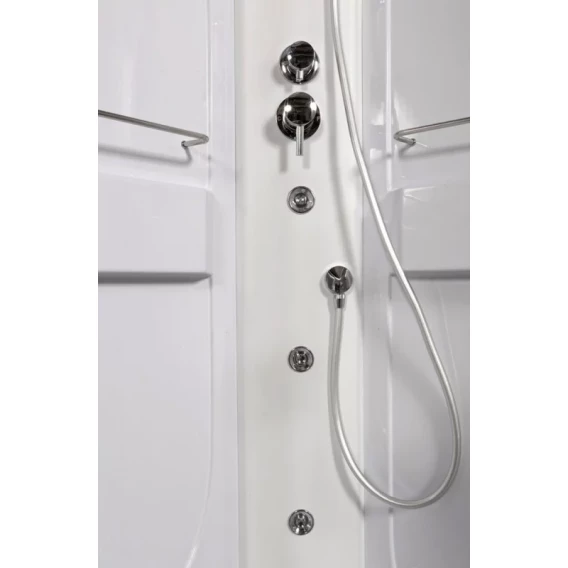 Душевой шланг, Душевая лейка, Держатель для душевой лейки, Подключение для душевого шланга, Ручки, Металлический каркас, Поддон, Сиденье, Смеситель, Сифон, Ножки