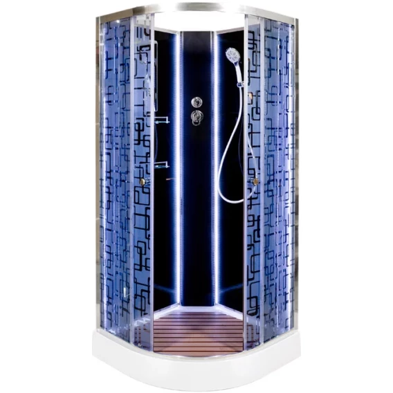 Душевая кабина 100x100x208 см Deto BM1510NLEDBLACK матовое с прозрачным узором