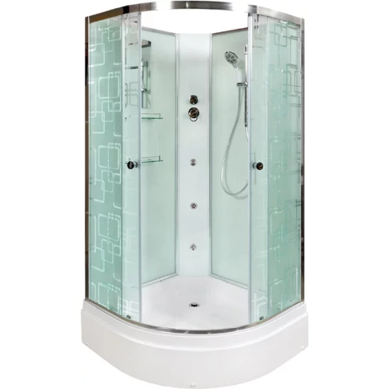 Душевой шланг, Душевая лейка, Держатель для душевой лейки, Полочка, Ручки, Металлический каркас, Поддон, Смеситель, Сифон, Штанга душевая, Ножки, Зеркало