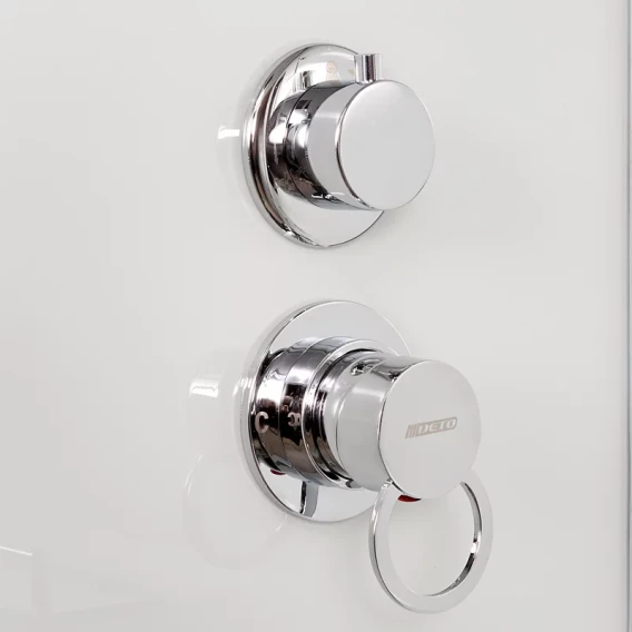 Душевой шланг, Душевая лейка, Держатель для душевой лейки, Полочка, Ручки, Металлический каркас, Поддон, Сиденье, Смеситель, Сифон, Штанга душевая, Ножки, Зеркало