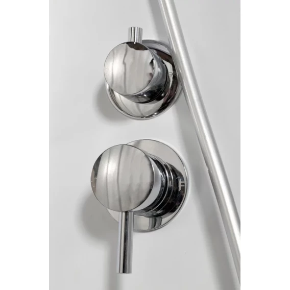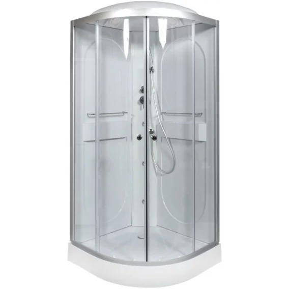 Душевой шланг, Душевая лейка, Держатель для душевой лейки, Подключение для душевого шланга, Ручки, Верхний душ, Металлический каркас, Поддон, Смеситель, Сифон, Ножки