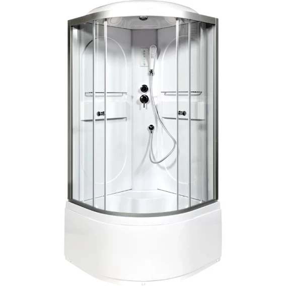 Душевой шланг, Душевая лейка, Держатель для душевой лейки, Подключение для душевого шланга, Ручки, Подсветка, Верхний душ, Динамик, Металлический каркас, Поддон, Сиденье, Радио, Смеситель, Сифон, Ножки