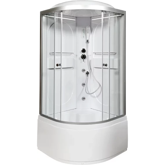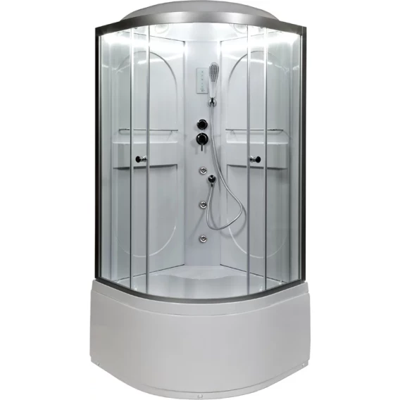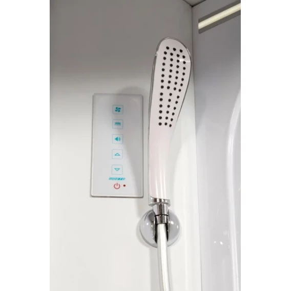 Душевой шланг, Душевая лейка, Держатель для душевой лейки, Подключение для душевого шланга, Ручки, LED подсветка, Верхний душ, Металлический каркас, Поддон, Сиденье, Смеситель, Сифон, Ножки