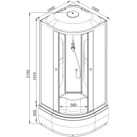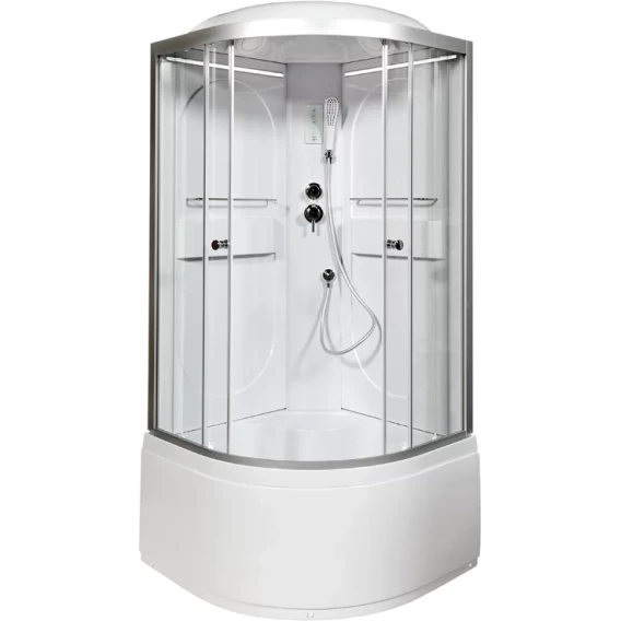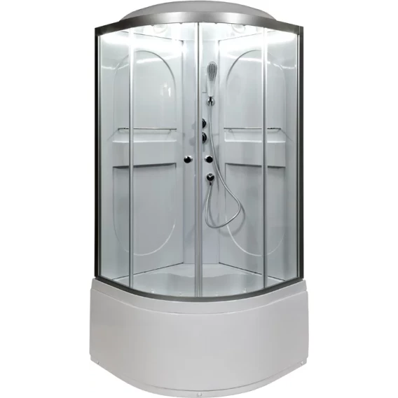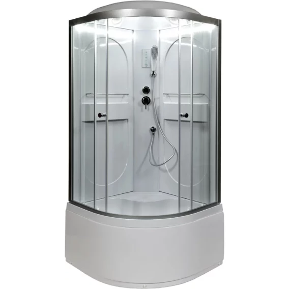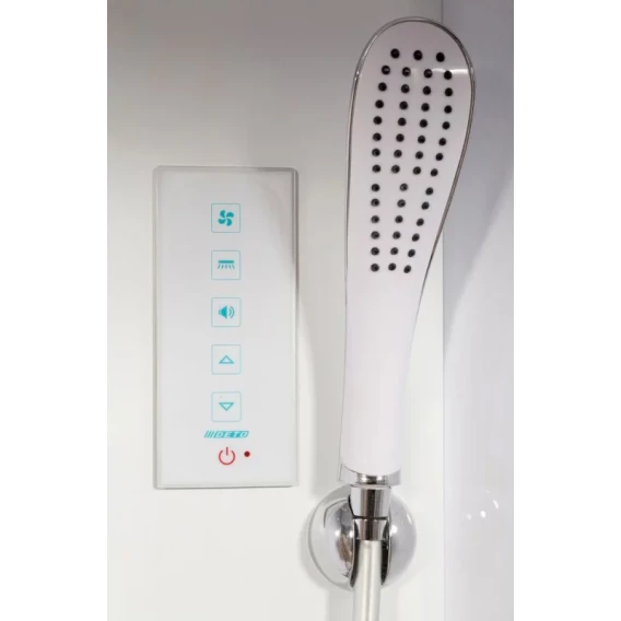 Душевой шланг, Душевая лейка, Держатель для душевой лейки, Подключение для душевого шланга, Ручки, LED подсветка, Верхний душ, Динамик, Металлический каркас, Поддон, Сиденье, Радио, Смеситель, Сифон, Ножки