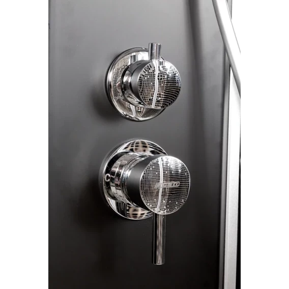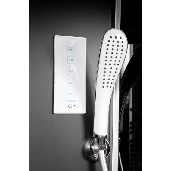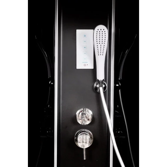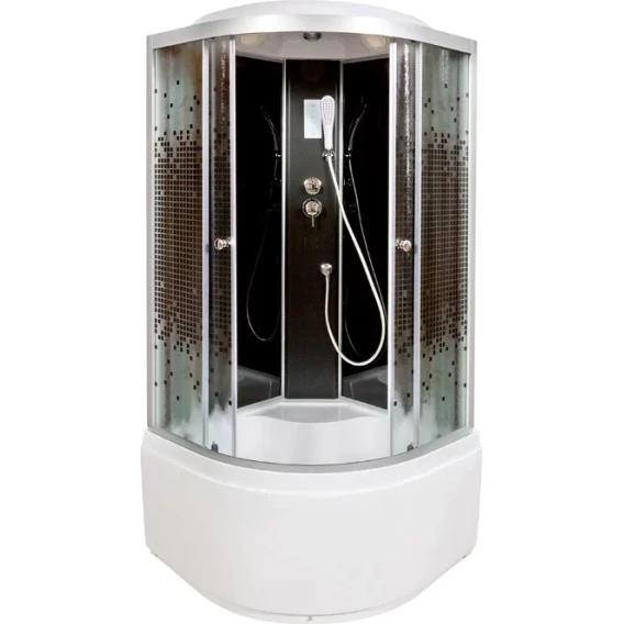 Душевой шланг, Душевая лейка, Держатель для душевой лейки, Подключение для душевого шланга, Ручки, Подсветка, Верхний душ, Динамик, Металлический каркас, Поддон, Сиденье, Радио, Смеситель, Сифон, Ножки