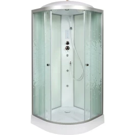 Душевой шланг, Душевая лейка, Держатель для душевой лейки, Подключение для душевого шланга, Ручки, Подсветка, Верхний душ, Динамик, Металлический каркас, Поддон, Радио, Смеситель, Сифон, Ножки