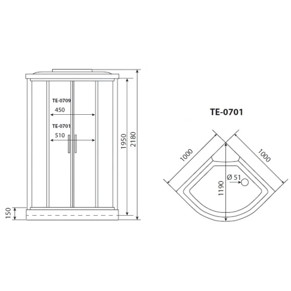 Душевая кабина 100x100x218 см Timo Eco TE-0701 матовое