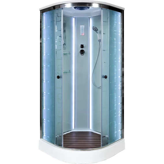Душевая кабина 100x100x220 см Deto EM1510LED матовое с прозрачным узором