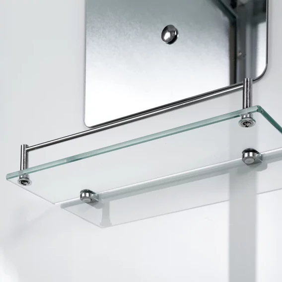 Душевой шланг, Душевая лейка, Держатель для душевой лейки, Полочка, Ручки, Подсветка, Верхний душ, Динамик, Металлический каркас, Поддон, Сиденье, Радио, Смеситель, Сифон, Штанга душевая, Ножки, Зеркало