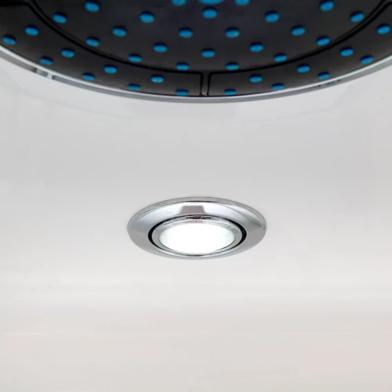 Душевой шланг, Душевая лейка, Держатель для душевой лейки, Полочка, Ручки, Подсветка, Верхний душ, Динамик, Металлический каркас, Поддон, Сиденье, Радио, Смеситель, Сифон, Штанга душевая, Ножки, Зеркало